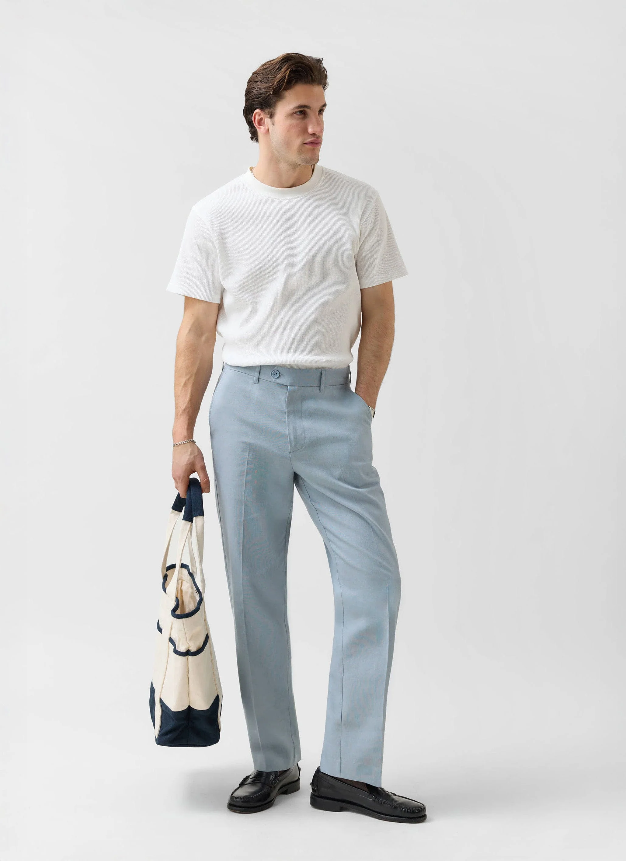 Men's Light Blue Linen Suit Trousers